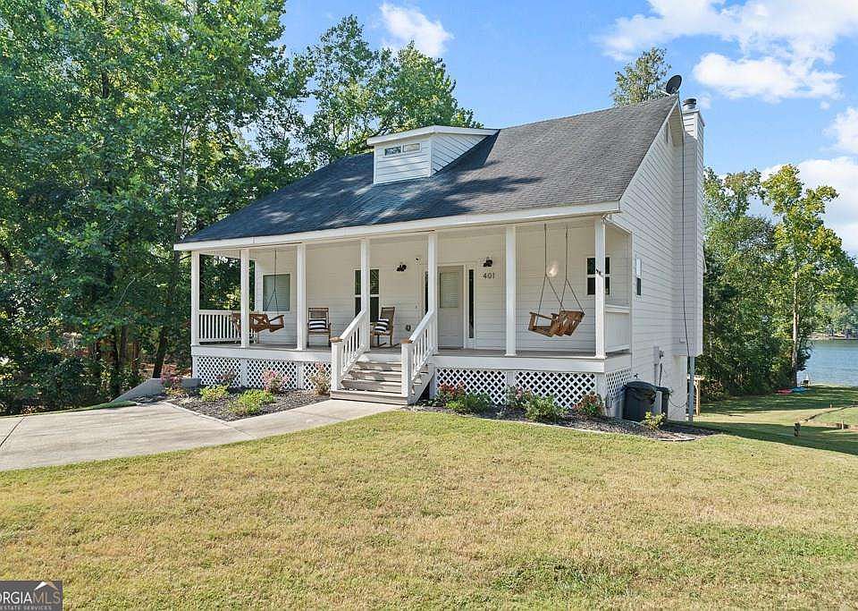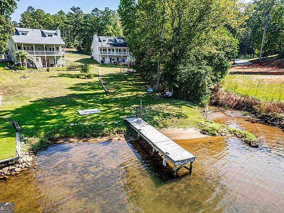 Just 15 minutes from shopping and dining in Milledgeville, this stunning lakefront retreat offers everything you've been looking for! The main level features an open concept with breathtaking big-water views of Lake Sinclair from the kitchen, dining, and family room. A cozy fireplace sets the tone for peaceful evenings, while a spacious deck and balcony off the owner's suite are perfect for enjoying your morning coffee. The owner's suite includes a luxurious bathroom with a soaking tub. A half bath and laundry room are also conveniently located on this main level. Upstairs, you'll find two bedrooms and a full bath, ideal for family or guests. The terrace level is perfect for entertaining with two additional bedrooms, a full bathroom and a large movie/game room that opens to the outdoor patio. Let the kids take over this space while you relax on the upper deck. Step outside and enjoy lakeside living with a shared dock where you can easily tie up your boat, plus a beach area perfect for swimming, fishing, and soaking up the sun. A fire pit overlooking the water adds the finishing touch for gatherings year-round. Whether you're looking for a full-time residence, a weekend getaway, or an investment, this home checks all the boxes.