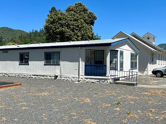On 0.69 acres, this well-kept, 3-bedroom / 2-bath manufactured home is centrally located in the middle of the town of Rogue River. Along with the home, the property includes a 1,648 sq ft church/sanctuary built in the early 1920's. It also has a 720 sq ft multipurpose building with a small kitchen and ADA restroom. These additional building are in excellent shape and offer the potential buyer many possibilities. With an elementary school across the street, this could be a church, daycare, dance studio or other community orientated service. The buyer should do their own due-diligence for their