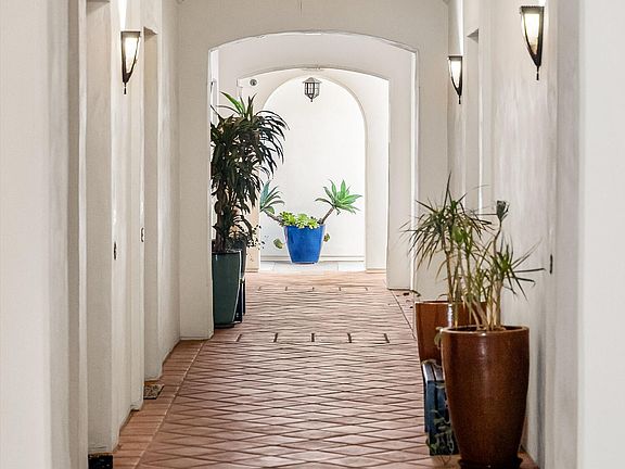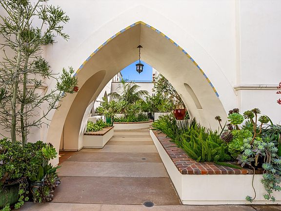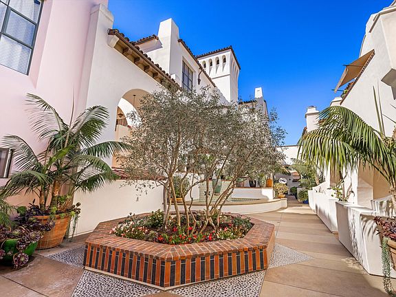 Experience refined living at Sevilla, a gated Spanish-Mediterranean enclave in the heart of downtown. This spacious 1BD/1.5BA single level 1600+ square foot residence features soaring 14-foot ceilings, timeless architectural details, and exceptional natural light throughout. Enjoy a private wrap-around patio overlooking tranquil greenspace, ideal for al fresco dining or morning coffee. With elevator access just outside the front door, an assigned garage space, and an ideal tucked away location, this home offers the perfect blend of style, privacy, and walkability. Just moments from the beach, Funk Zone, fine dining and boutique shopping...this is Downtown living at it's finest.