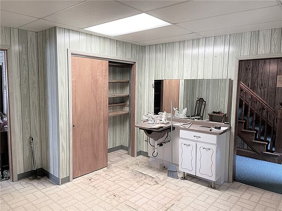 Large 2 story with plenty of room and many possibilities. Value can easily be added with minor cosmetic repairs or transformation of the "Hair Salon" into a first floor master bedroom or home office. Central air conditioning, 19X12 covered back deck, level and usable yard, additional patio space with landscaping for privacy, large eat in kitchen, open entry way, large living room. Detached Garage is extra deep and has plenty of room for parking as well as storage of other items. An additional second story on the garage provides even more storage space.