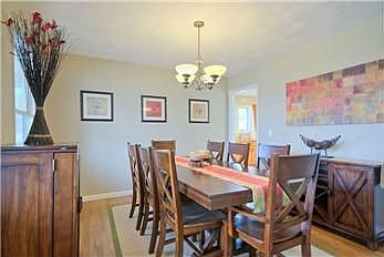 Beautiful two-story traditional in Blacksburg's Northside Park. Entry foyer allows you to welcome guests; large dining room has views of the mountains in the distance. Hardwood floors throughout the main level, with a floor-to-ceiling stone-faced fireplace (woodburning), and large windows overlooking the 1/2 acre yard. Large kitchen with granite counters and peninsula - plenty of cabinets and counter space, and all stainless steel appliances convey. All four bedrooms - and laundry - located on the second floor. Master suite is 252-sf, complete with tray ceiling, as well as a remodeled master b