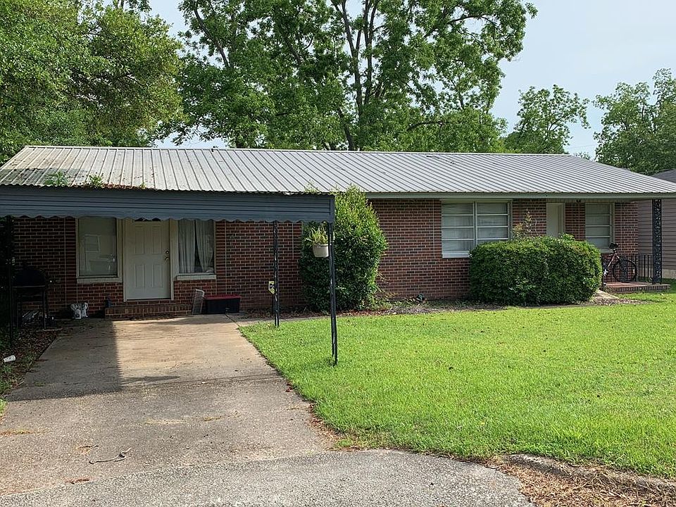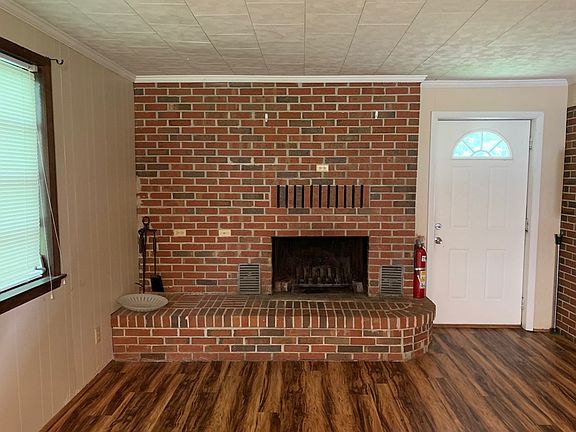 Charming 2-bedroom, 2-bath brick home featuring a durable metal roof and a versatile flex room that can easily serve as a 3rd bedroom or office. Enjoy a spacious, open family room complete with a cozy fireplace—perfect for gatherings. The large kitchen offers plenty of cabinet space, a breakfast area, and a separate dining room for more formal meals. Convenience continues with an interior laundry and additional storage in the small outdoor shed. A well-maintained property with flexible living spaces and classic comfort throughout!