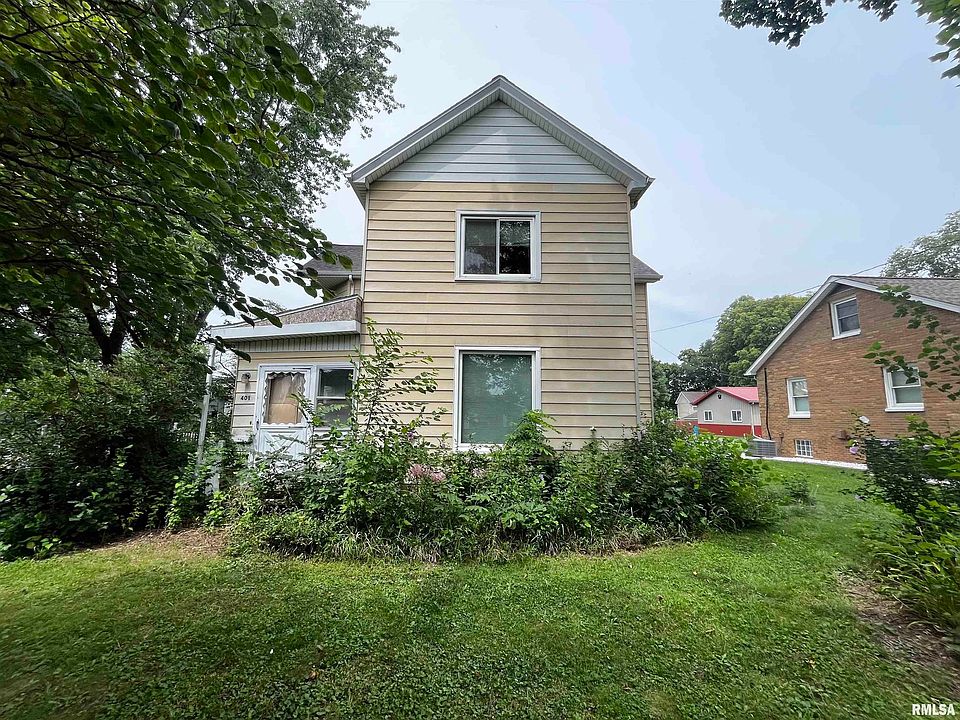 Great Location Across from the Park! This home is full of potential and ready for your personal touch! Featuring four bedrooms and two bathrooms (bathroom upstairs has been gutted and is plumbed), it offers plenty of space for a growing family. The main floor includes a spacious primary bedroom, a full bathroom, laundry room, formal dining room with charming antique pocket doors, a living room with access to a covered porch/three-season room, and an eat-in kitchen complete with range/oven and refrigerator. Upstairs, you'll find three generously sized bedrooms, a sitting area, and a second bathroom that has been gutted and is plumbed - ready for you to finish to your liking. There's also potential to add a kitchenette in one of the upstairs bedrooms Don't miss this opportunity to make this well-located house your next home. , making it perfect for extended family, guests or rental possibilities. Electrical and plumbing updated past 5 years. Main floor bathroom remodeled in 2021. Garage Doors replaced in 2022. Fence (2014). Roof (2005).