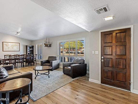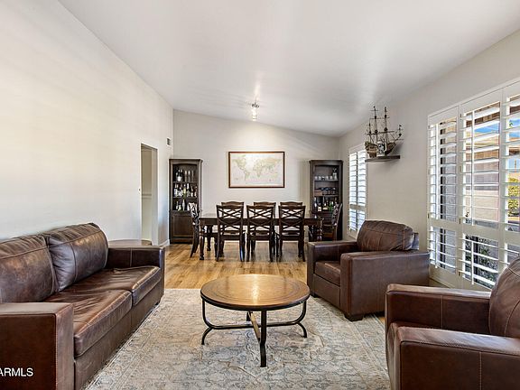 Move-in-ready Moon Valley home located on a 1/4-acre lot with no HOA! Enjoy a split floorplan with vaulted ceilings, wood-grain LVP flooring and plenty of natural light! The separate family and living rooms provide ample space for entertaining, while the updated kitchen shines with quartz counters and stainless steel appliances. The primary suite is split from the other bedrooms, offering a walk-in closet, double sinks and a private exit to the backyard. Secondary bedrooms share an updated bathroom. Step outside to your private backyard oasis complete with an expansive covered patio, artificial turf, a fenced pool (with a new pump in 2022), and plenty of space to relax! In addition, you'll enjoy the convenience of a 2-car garage, RV gate & fenced RV parking area. Quiet street!