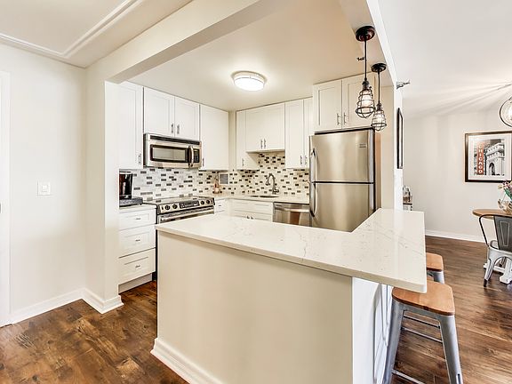 Glimpses of lake michiganLarge bedroomIsland with breakfast barHome officeTwo outdoor patiosNorth-facing city viewsUpdated bath