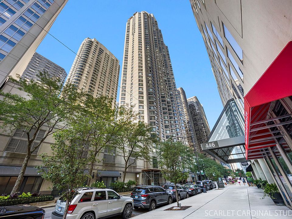 Enjoy breathtaking views of the city and Lake Michigan from this 44th floor condo located in the heart of Streeterville. This prime Near Northside location is conveniently situated near numerous attractions and amenities, such as the lakefront trail and beaches, Riverwalk, Navy Pier, Magnificent Mile, as well as dining options, shopping venues, Northwestern University and Hospital, parks, theaters, and much more! This sunlit, south-facing condo boasts an open floor plan, featuring a combined living and dining space with large windows offering beautiful views of the skyline and lakefront. The kitchen comes equipped with stainless steel appliances, granite countertops, mahogany cabinetry, and a custom wine rack. The bathroom has been upgraded, and there are two generous walk-in closets with custom organizers. An exceptionally well-maintained building with outstanding amenities, includes an indoor pool, sauna, hot tub, party room, gym, and two outdoor sundecks providing panoramic views, along with a 24-hour doorman. Commuters will appreciate the easy access to public transportation and expressways. The unit does not come with parking, but there are typically spaces available for lease in the building's parking garage.