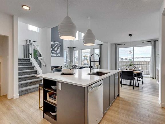 Discover The Legacy – a stunning walkout home designed for luxurious everyday living. Built by a trusted builder, this home showcases on-trend, designer-curated interior selections tailored for a home that feels personalized to you. This energy-efficient home is Built Green certified and includes triple-pane windows, a high-efficiency furnace, and a solar chase for a solar-ready setup. With blower door testing, that may be eligible for up to 25% mortgage insurance savings, plus an electric car charger rough-in, it’s designed for sustainable, future-forward living. Featuring a full range of smart home technology, this home includes a programmable thermostat, ring camera doorbell, smart front door lock, smart and motion-activated switches—all seamlessly controlled via an Amazon Alexa touchscreen hub. This home features a main floor bedroom and full bathroom, perfect for guests or added flexibility. The executive kitchen is a chef’s dream with built-in stainless steel appliances, gas cooktop, chimney hoodfan, and a walk-through pantry with elegant French doors. The great room impresses with an electric fireplace framed by floor-to-ceiling tile, a stylish mantle, and soaring open-to-above ceilings. Oversized windows throughout flood the space with natural light. Upstairs, the spa-inspired 5-piece ensuite includes a walk-in shower, soaker tub, and tile flooring, while the main bath offers dual sinks and tiled floors for added convenience and style. Photos are representative.