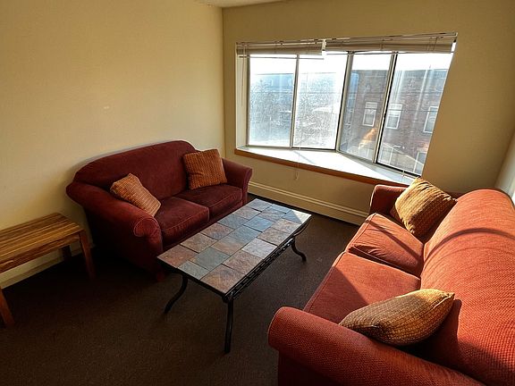This is a three bedroom apartment. The unit has three bedrooms, one of which can be turned into a double (check for pricing on a double). The living room has two couches, a coffee table and a bay window that provides lovely ambiance for studying. The kitchen offers a pass-through window to the dining room. There is a plethora of cabinets and counter space in the kitchen. Each bedroom has a large double window that faces west, with expansive views of downtown Ithaca. The bathroom is large, with a bathtub and a sliding mirrored door. The apartment has plenty of storage space whether there are three or four people in the unit. 24/7 recorded security camera suite from ADT.