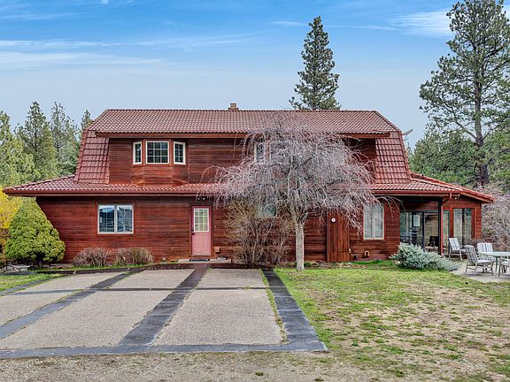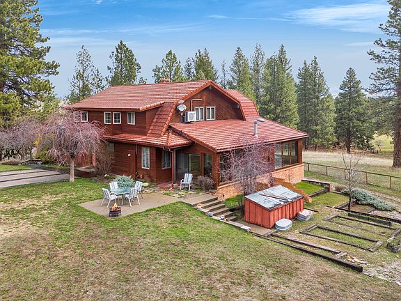 This exceptional property spans 10.5 serene acres, with Hayes Creek winding through. The custom home is both unique and charming, featuring a distinctive gambrel roof and a setting that offers privacy and character. The main living room provides a cozy gathering space ideal for unwinding in the evenings. The den includes a built-in wet bar, perfect for entertaining. The main-level primary suite features a private dry sauna and direct access to the sunroom. This sunroom is equipped with a built-in hot tub and a custom BBQ area, creating the perfect setting for year-round enjoyment. Downstairs, a built-in garage and additional living quarters, ideal for guests or extended family. Multiple outbuildings provide ample storage, including a picture-perfect two-story barn that could easily serve hobby farm dreams. Whether you're longing for a quiet homestead, a versatile family estate, or simply room to roam, this one-of-a-kind property invites you to slow down, breathe deep, and feel at home.