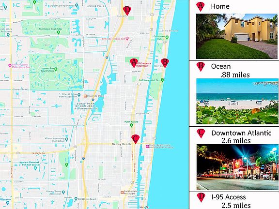 Two Story, 4 Bedrooms, 2.5 Baths, 2- Car Garage Original Owner Home Premium corner/end of street lot is the largest in the neighborhood, and is both quiet and private. Low HOA with community pool and full lawncare service. Conveniently located within 2 miles of Downtown Delray Beach, the beach, and I-95 Access. 2014 Build is hurricane safe with large impact windows and front door. Home features a great room and upgraded kitchen as well as a massive master suite. The laundry room is conveniently located upstairs. Upgrades Include: -Large crown molding -Tile downstairs -Laminate upstairs -Stainless steel appliances, extended granite counter tops and upgraded cabinets -Extra overhead floodlights -Cast iron stair case railing -Wired with CAT5, Comcast Cable, and ATT Uverse Gig