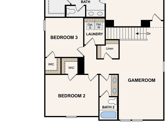 Instead of a study and powder bath, this home includes a main-level guest suite with a full bath—ideal for visitors, multigenerational living, or a private office. Upstairs, a large game room provides flexible hangout space, flanked by two secondary bedrooms and a generous owner’s suite complete with a soaking tub, walk-in shower, and oversized walk-in closet.