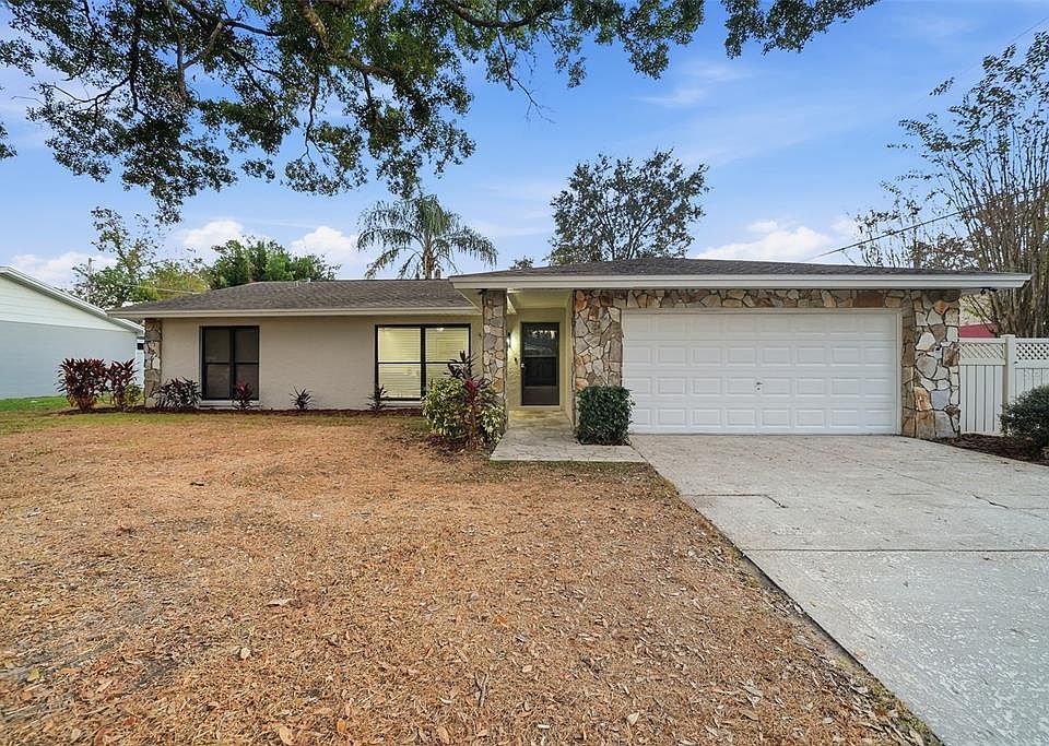 Step into this beautifully renovated 3-bed, 2-bath pool home that blends modern style with everyday comfort. Featuring a 2-car garage, a private screened-in pool, and an above-ground hot tub, this home is designed for relaxing and entertaining. Inside, enjoy a brand-new kitchen with stainless steel appliances, upgraded cabinetry, granite countertops, and a coordinated backsplash that ties the space together. New LVP flooring flows throughout the home, creating a clean and cohesive look. Both bathrooms have been fully remodeled with contemporary tiles, upgraded fixtures, and granite vanities—offering a fresh, spa-like feel. The home has been freshly painted inside and out, including the pool deck, giving every space a crisp, updated finish. Outside, the property features refreshed landscaping with new plants and beddings, adding great curb appeal and a welcoming outdoor atmosphere. Whether you're hosting by the pool or unwinding in the hot tub, this home offers the perfect blend of comfort and style—move-in ready and beautifully updated throughout.
