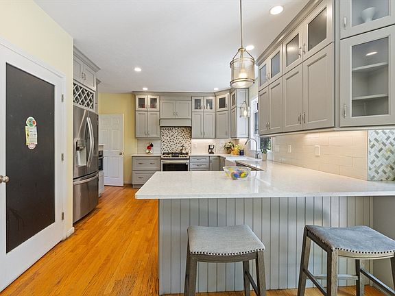 Classic colonial with some great updates where you want them - kitchen and main bath! Great little mud area from the two car garage into this spacious kitchen with amazing pantry closet, nice counter space and an eat-in area. Sliders out to the deck and backyard. Family room off the kitchen with gas fireplace. Living room with large open to the family room for double space. The dining room is currently used as a great home office, very versatile. Upstairs, four spacious bedrooms. The primary has a bath and walk-in closet. Lower level kitted out as a playroom for the teens! Long deck on back of home and great yard. Across the street from the town park complex with all the amenities. Superbly located for easy access to the whole town.