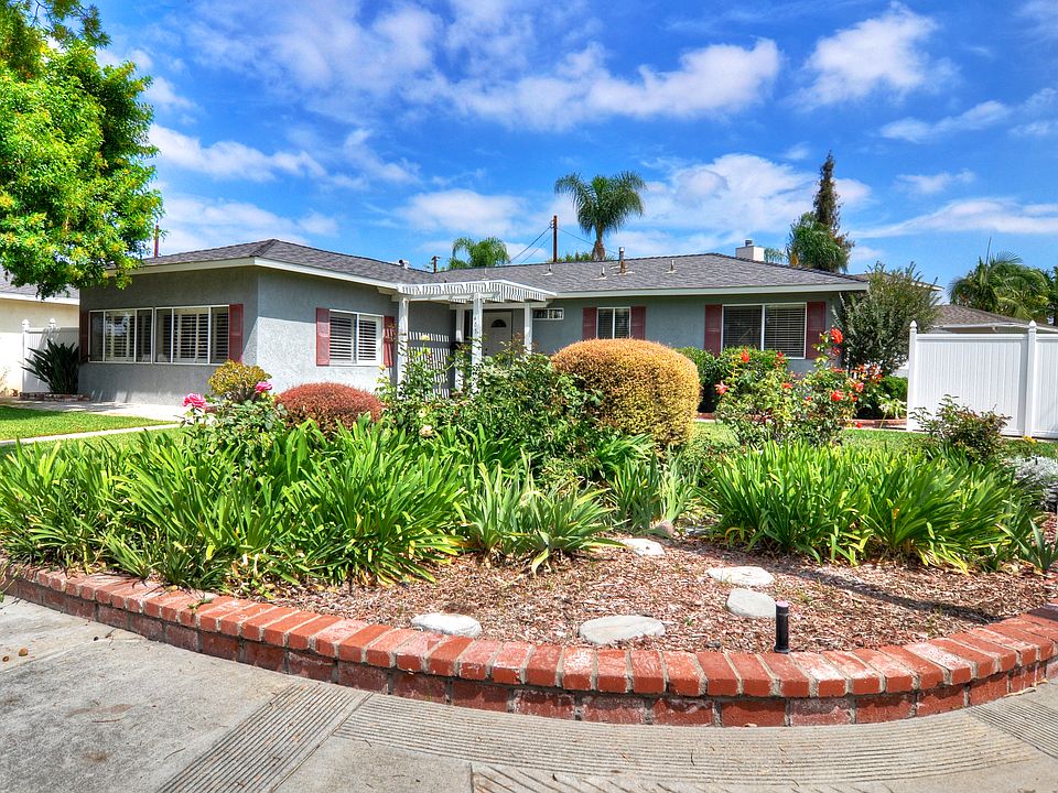 This lovely single-story Brea home has 3 bedrooms, 2 bathrooms and 1,660 square feet of living space. The open floor plan provides plenty of space throughout the main areas of the home with dark ceramic flooring throughout. The newly renovated kitchen features a breakfast bar and plenty of counter space. There is an added bonus room with shutter style wood blinds and built-in reading bench. The home is located on a corner lot with large lawns in the front and back yards and a covered porch and patio. The back patio includes a island bar, natural gas BBQ, refrigerator and a smoker. The detached two-car garage can be accessed from the beautifully groomed backyard. Enjoy the quiet neighborhood with close proximity to Brea Creek Golf Course, Arovista Park and City Hall Park, which is home to the popular Brea Plunge that features live music and swimming during the summer. Birch Street Promenade is just a few blocks away with plenty of shopping, dining and entertainment options as well as the expansive Brea Mall.