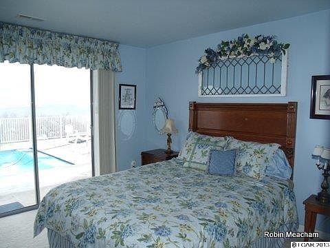 RIVER VIEW! 3 private patios and deck, terraced garden area, extra parking plus RV parking below the inground pool. Updated home boasts tasteful dcor throughout. White cabinets in unique kitchen, walk in pantry of your dreams and quiet sitting/homework/family room by dining room which opens to private patio. Circular staircase to basement that hosts 3 bedrooms plus master, all with sliders to pool. Master is elegant and has nice walk-in closet and double sinks. Basement also has a family bath & laundry