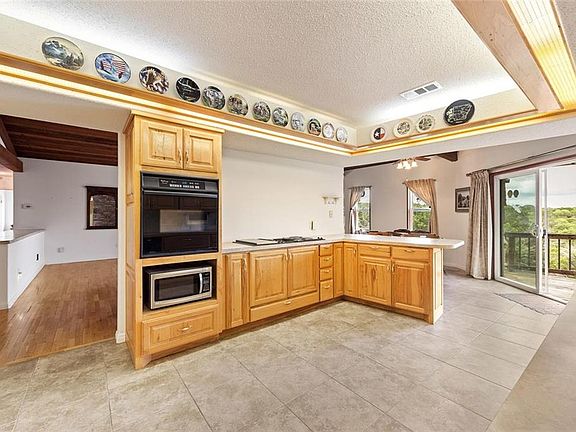 VACANT! SHOW! This Texas Hill Country Custom home is 100% limestone & full of charm! The floorplan is situated around a giant fireplace which delivers heat to the entire house. The land consists of 6 beautiful acres, a wet weather creek and gorgeous native landscaping. There is both a well & rainwater collection, a bright sunroom & a 20'x28' deck off the back of the house. The HUGE workshop has a vacuum and compressor system, central heat & even it's own bathroom! Unrestricted!