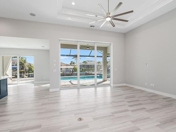 This coastal home boasting 2725 sq feet under air has great curb appeal with all new landscaping, custom brick paver driveway, walkway and entrance and a perfectly blended custom color flat roof tile to tie the home together perfectly. The 23x21 garage with hurricane rated garage doors is also pre-wired for electric car charging. A bonus feature of a built in security system with 2 keypads for convenience and also pre-wired for security cameras is ready to use. Home is equipped with two16 seer A/C units with dual zone cooling and heat for maximum efficiency in cooling and heating when necessary. Upgraded 80 gallon instant water heater, hurricane doors and window throughout entire home for maximum storm protection, R30 insulation in home and also added between first and second floor for energy efficiency. Open floor plan with 10 foot pocketing sliders that walk out to extended lanai area with custom pool and spa and led color changing lights with a picture window screed cage for unobstructed views of the water. Custom outdoor summer kitchen with Lion grill and sink, completely perfect outdoor set up for entertaining. Custom kitchen with beautiful granite counter-tops, custom tile back splash with black stainless steel appliances to match and center island for plenty of seating. Expansive master bedroom with doors that access your sunny tropical lanai. Luxurious master bathroom includes dual vanity's, walk in shower with multiple rain heads as well as custom free standing soaking tub. Newer seawall replaced in 2016 and ready for new owner to put in custom dock and lift. Do not miss this stunning tropical paradise beauty!