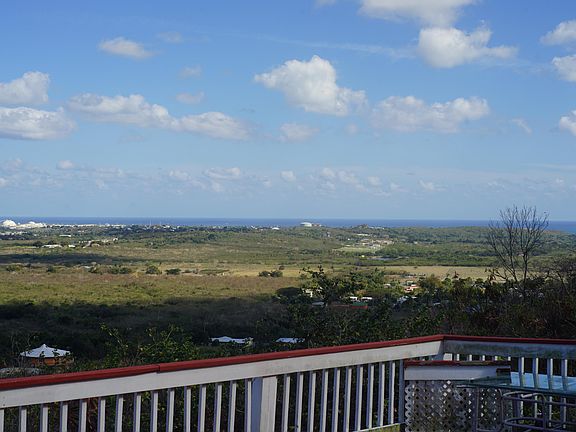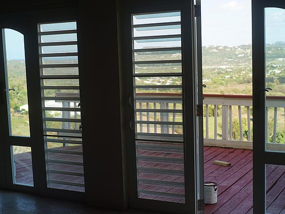 Quiet private property with views of the valley to the south shore. Was hurricane damaged, mostly rebuilt with new roof, ceramic flooring, plumbing and electrical redone in place, wood ceilings, unique carved mahogany entrance doors. No cabinets or appliances, but plumbed and wired. One bathroom finished, second one planned but not completed. New hurricane rated windows. Two cisterns approx 50,000 gal. New pump and water heater. Deck needs to be reconstructed totally. Motivated seller.