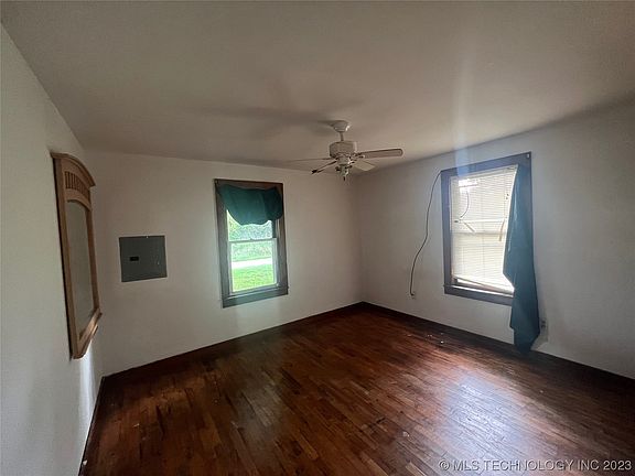 Dougherty Oklahoma, you will find this 2 bedroom & 1 bath house with 3 lots. The lot the house is sitting on a corner lot has mature trees and a nice size back yard. The home is total electric, but does have propane available