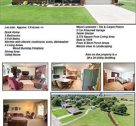Nestled on the North edge of Corn, OK - well maintained 3 bedroom - 2 bath - brick home - Corn Creek on the property. 2 Living areas with fireplace. Approx. 1.9 acres of well manicured - landscaped - yard. Separate back garage or shop. Ready to go!! Must see to appreciate.