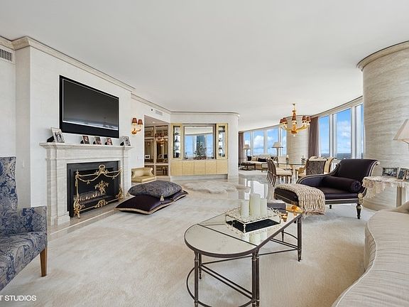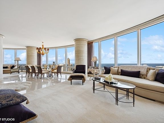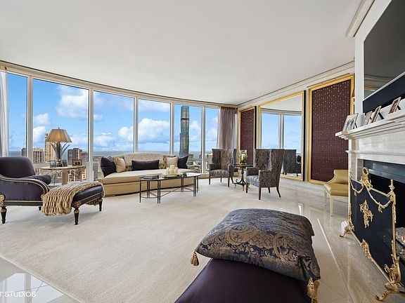 Exceptional 4,000 square foot A tier residence on the 48th floor of Trump Tower Chicago featuring 3 bedrooms and 4.5 bathrooms. Primary bedroom has his and hers bathrooms! Enjoy sweeping, unobstructed north and east views of the lake, river, and skyline. This is one of only 9 homes of this size in the building and it is designed for grand entertaining and elegant everyday living. Expansive floor to ceiling windows and an open layout showcase the most iconic views in Chicago. Designed by world renowned designer John Wiltgen, every detail was curated to maximize the beauty of the space and highlight the views from every room. The dramatic living and dining areas wrap around walls of glass and feature 3 custom fireplaces, a built in sound system, and impressive entertaining space. The remodeled chef's kitchen is finished with Snaidero cabinetry, premium stainless steel appliances, granite countertops, and a large island perfect for hosting. The primary suite includes 2 luxurious bathrooms for her and him, and 2 oversized walk in closets with an island. Both closets are the size of a bedroom. A premium parking space is included in the price. Residents enjoy a 20,000 square foot state of the art fitness center and spa, 24 hour concierge, bellman service, in residence dining and room service, a million dollar dog walk, and full five star hotel services. This is one of Chicago's most prestigious addresses and a rare offering at Trump Tower.