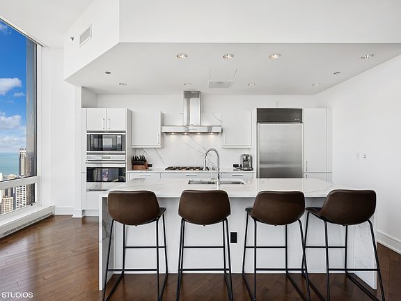 Discover the epitome of luxury living in this exceptional 65th-floor unit, where an impeccable floor plan meets sophisticated design. Positioned on a transitional floor, this residence showcases extra-high ceilings , windows that reach 11 feet or more, creating a truly unique and awe-inspiring experience. Newly remodeled to perfection, this 2-bedroom, 2.5-bathroom sanctuary offers breathtaking vistas of Lake Michigan and The Loop. It has been thoughtfully updated with a refined touch, incorporating the most exquisite finishes available. At the heart of this home is its open gourmet kitchen, equipped with premium Wolf and SubZero appliances, sleek Snaidero cabinets, and pristine white marble countertops. Further highlights include a spacious laundry room, abundant storage space, a linen closet, and two inviting fireplaces that infuse warmth and character into the space. Retreat to the master suite, featuring his-and-her walk-in closets and a luxurious stone bath with dual vanities and a separate shower. Residents also have access to unparalleled 5-star building amenities, such as 24-hour door staff, a cutting-edge 14000sqft fitness center and spa, an indoor pool, concierge service, and much more. This is not just a home; it's a lifestyle that awaits you.