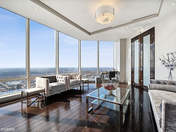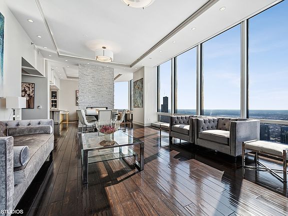 Rarely available, 86th floor Penthouse with spectacular views in a building designed by Adrian Smith from the world renowned Skidmore Owings & Merrill Architectural firm. The floor features extra tall ceilings and has restricted access to 86th floor owners. The unit features top of the line finishes including, luxurious chef's kitchen, custom hardwood floors throughout, beautiful Calcutta marble primary-bath, custom closets, and 12 foot floor-to-ceiling windows. Enjoy extravagant 5-star amenities. This unit has 2 storage units. Parking spaces available for purchase. Pet friendly building.