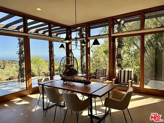 Welcome to this contemporary furnished lease for 6-12 months term with architectural flair, perched in the prestigious Eucalyptus Hill neighborhood just south of downtown Santa Barbara, bordering Montecito. Set in a tranquil, nature-rich ambiance with quiet atmosphere, the property showcases sweeping views of the Pacific Ocean and mountain vistas. Featuring 4 bedrooms of which the 4th is a designated office on the main level near the primary suite, 3.5 bathrooms, and 3070 square feet. A seamless blend of style and comfort. The chef's center island kitchen with breakfast bar seating boasts stainless steel appliances, granite counters, and opens to both dining and living rooms with walls of glass and doors to a large wraparound deck showcasing the views - ideal flow for indoor/outdoor entertaining. The primary suite features a walk in closet the size of a room, private outdoor patio and meditation area, dual vanity, spa tub and walk in shower. Upstairs, there are two additional bedrooms and bathrooms and a bonus room with wet bar that opens directly to huge viewing deck with panoramic views, creating the ultimate setting for gatherings or quiet sunset moments. A private yard and effortless indoor-outdoor living complete the picture. Additional features include tremendous attached 2 car garage plus storage room for bikes, surfboards, paddlers, etc., spacious laundry and utility room complete with washer, dryer, and second refrigerator. This walkable area you'll never be far from dining, shopping, culture, and coastal experiences. Offered fully furnished with weekly housekeeping and gardening maintenance included, this turn-key retreat embodies the best of Santa Barbara coastal living.