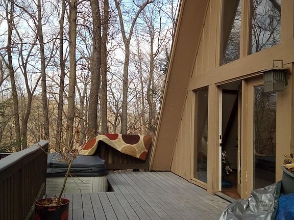 This charming A-Frame house is nestled in the resort community of Hideaway Hills in Sugar Grove. The lot is remarkably flat for this area. The association fees include trash and all amenities. Amenities include 9 hole golf course with Clubhouse, 5 lakes, boat docks, beach, swimming pool, shooting range, grass airstrip, horse barn, disc golf, 3 parks, 2 shelter houses, tennis courts, atv track, amphitheater, Lodge restaurant and bar, gated with 24 hour Security, organic garden and 2 playgrounds. Ride your side by side/ golf cart around the community. Gas station/convenient store close by. New fitness center in progress. Great road maintenance.