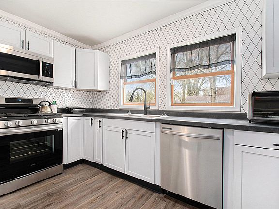 Step into this beautifully renovated 3-bedroom, 2-bathroom home that perfectly blends comfort and style. This home has brand new flooring throughout along with new furnace and central air. The primary bedroom has a huge walk in closet that can be converted back into a bedroom to make a 4 bed home. You'll love the bright and modern kitchen, complete renovated with new cabinets and countertops and thoughtful updates along with new smart appliances—perfect for cooking and entertaining. Both bathrooms have been tastefully renovated, offering a fresh, clean look with quality upgrades. Enjoy the ease of main-floor laundry and the convenience of a smart layout that makes everyday living a breeze. Whether you're hosting guests or relaxing at home, this property offers the perfect backdrop. Don't miss your chance to own this move-in ready home with all the right updates in place!
