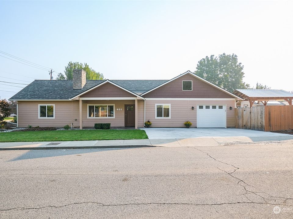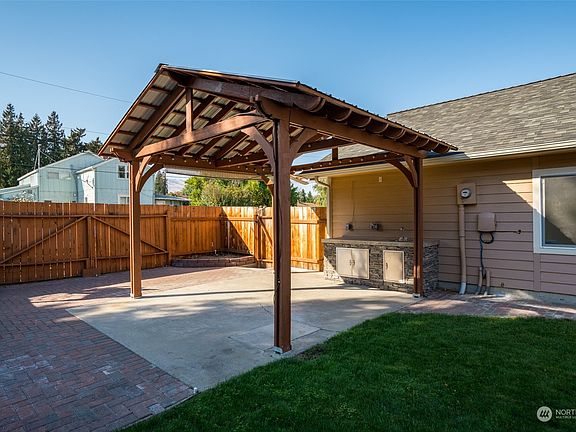 Beautiful one level home with fabulous outdoor space. Completely rebuilt, this home has an effective age of two years. Open floor plan, hardwood floors, wood burning fireplace with stacked stone tile. Updated kitchen features fingerprint resistant stainless appliances, Alder cabinets, and Corian counters, built in hutch cabinet in dining room. Primary bedroom with walk in closet, double sinks, tile floor and shower surround. Two extra bedrooms are good-sized and feature closet organizers. Lots of storage in the laundry room and finished attic room above the garage. Entertain in style on the covered patio with built in tiled sink counter. Detached shed and greenhouse. Completely fenced yard with automatic sprinklers. RV parking up to 30 FT.