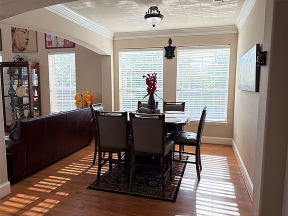Inside, you’ll find an inviting open floorplan with soaring ceilings, hardwood and tile flooring on the first floor, and granite countertops in the spacious kitchen. The formal living and dining areas showcase expansive views of the large private backyard, making everyday living and entertaining a delight. The master suite offers a tranquil retreat, complete with a spa-like bath featuring a separate tub and shower. Step outside and enjoy your very own backyard paradise, featuring a sparkling pool, lush landscaping, and plenty of room to relax, entertain, or let kids and pets roam free. Roof, water heater and AC were replaced in 2023.