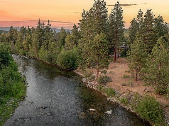 Designed by Baylis Architects, this unique river home situated on a gated 8+ acre parcel is elegantly crafted with a timeless, rustic style. Every inch of this home is thoughtfully finished from top to bottom. Enjoy 3 bedrooms, a large game room, office, and a great room with vaulted ceilings, stained glass accents and handcrafted stone fireplace. Master suite with walk in closet, sunken shower and fireplace has direct access to the patio. From the great room to the kitchen, a wall of windows frames a forested river view and a massive 2-tiered patio with a hot tub and fire pit accented with stonework, all just steps away from the river. Attached heated 3 car garage, plus a detached 2 car, heated garage for all the toys. Fenced garden space.