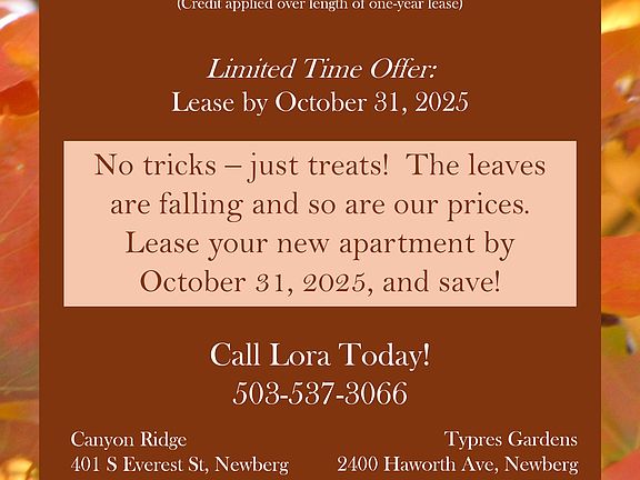 Canyon Ridge Apartments is a quiet community located just off Hwy 99 in Newberg. The complex is within walking distance to George Fox University, Newberg High School, Chehalem Aquatic Center and a short drive to Mabel Rush Elementary and Fred Meyer shopping center.