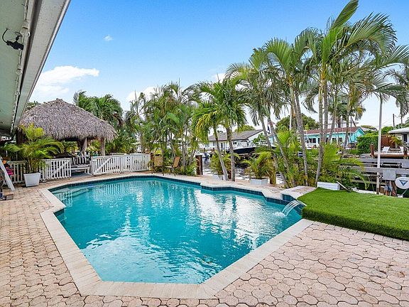 I found your dream home! Beautifully furnished single family home directly on the water in Snug Harbor on a cul de sac (home can be sold unfurnished as well). Enjoy your morning coffee on your outdoor gazebo next to your tropical oasis pool. Just a short boat ride and easy access to the intracoastal and Hillsboro inlet. Boat lift has new motor can hold a 14k weight. 3 bedrooms, 2 bathrooms. Open floor plan, perfect for entertaining. Kitchen has newer stainless steel appliances and living room has outdoor sliders that offer bright natural sunshine throughout the day. Do not forget those unforgettable sunsets!