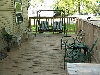WOW! Lots of remodeling & updates! Easy to maintain vinyl siding, thermopane windows, newer interior paint & carpeting. Updated bath and kitchen w/garden window and ceramic tile. Separate room for laundry. Fenced yard with large storage bldg w/garage type door. Supersize front deck has room for everyone!