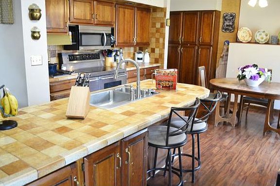 Do you love to cook and entertain? The main level has an EXPANSIVE cherry cabinet/eat-in kitchen opens to a large living room/dining area complete with a skylight! This main level has 2/3 bedrooms including 2 bathrooms, one of which is a functional master bath, full laundry/addâl kitchen storage space and a wrap-around deck. The newly redone lower level, which would make a great in-law/guest/potential renter suite has a never-been-used new kitchen, redone hardwood floors, new laundry, 2 bedrooms and a full bath. Both have access to storage & a garage all while backing up to green space!