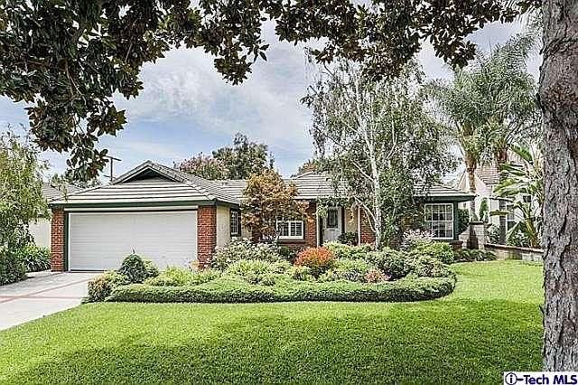 Wonderful 3Br 2Ba + Family room home. Offering updated kitchen & bathrooms. Master Suite w/ Vaulted ceiling and spacious bathroom. Family room with vaulted ceilings, FP, wet bar w/ Sliding glass doors that opens onto rear & side yards. Formal living & dining room. Meticulous landscaped grounds both front and rear. Private rear yard also offer a putting green and retractable patio awnings. Updated kitchen overlooks side yard with patio & water feature. A Must See Property.