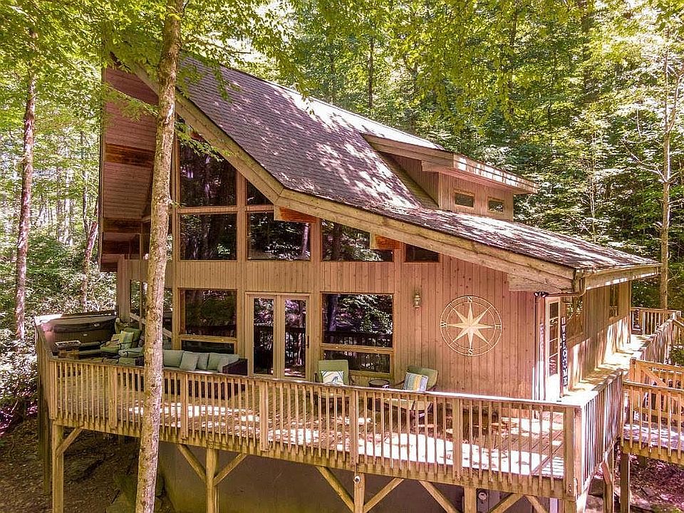 The property at 401 Saratoga, Boone, NC 28607 is a spacious home located in the gated Yonahlossee Saddle Club. Perfectly located minutes from Boone and Blowing Rock as well as local ski attractions. This Chalet-style home is situated on a beautiful private wooded lot ideally located within minutes of Boone, Blowing Rock, and Sugar Mountain. This home features 20-foot-high windows with a spectacular view of the woods, a bubbling creek, and loads of wildlife. The open-concept living area provides a 60-inch tv, high-speed internet, sleeper sofa, and a gas fireplace that is easily turned on with a switch. The eat-in kitchen has new appliances, with a dining room table with seating for eight, that is just right for entertaining. Just off the kitchen is a game room perfect for children and adults alike with a large flat screen tv, Xbox, sleeper sofa, as well as a Foosball table, and arcade. For your privacy and convenience, the main level and the second-floor bedrooms both are en suites with king beds and large flat-screen TVs.