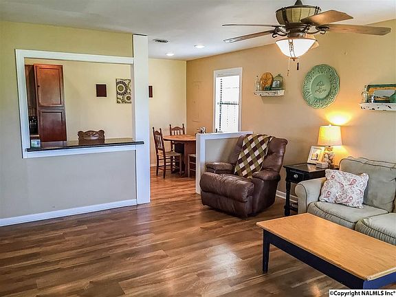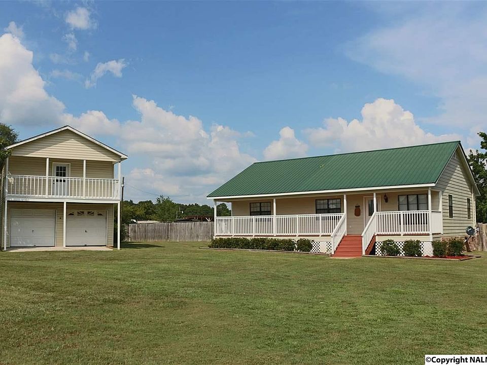 Nice 3 bed 2 bath with a detached 2 story (600 sq' up 600sq' down), 2 car garage 20x30 garage upstairs has a small sitting deck in front. Convenient to Huntsville and Guntersville. Home sits on 1 acre and has a privacy fenced back yard. Eat-in kitchen is open to the living room area. Laminate flooring through out. Master has a nice tile shower.