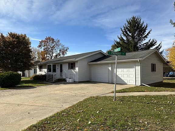 Main floor living in this ranch house on a corner lot close to downtown. Main floor features 2 bedrooms, bright living room, spacious kitchen with snack bar, pantry, lazy susans and an abundance of cabinet space with roll out shelves, dining room with french door to deck, full bath with shower, laundry/mud room has wash sink, folding counter, cabinets and shelving for hanging laundry, coat closet and door to two stall attached garage. The lower level has a family room, full bath with tub/shower, 2 other rooms with closets and the mechanical/storage room. Kitchen, dining room and bedroom 2 have wood floors. The lower level doesn't have floor coverings. Water heater new in 2024, all appliances (except dryer) new since 2017, furnace 2015.