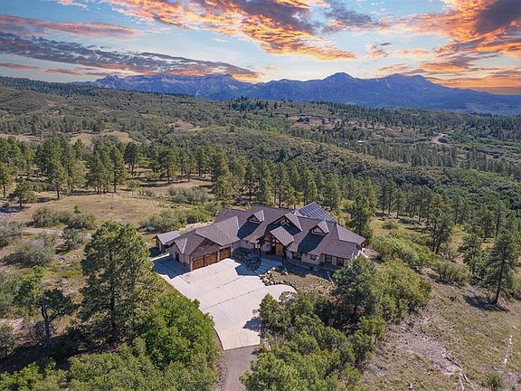 Your search for solitude and luxury ends here. This thoughtfully designed single-level home blends custom craftsmanship with expansive open spaces, soaring ceilings, breathtaking views, and over 4,000 square feet of private living. Perched to capture sweeping valley and mountain vistas—including the unparalleled beauty of Navajo Peak—the home was created for ease of living, with every room on one level. The gourmet kitchen boasts a Sub-Zero refrigerator, Viking cooktop, double ovens, granite countertops, hickory cabinetry, two drawer-style dishwashers, and a granite-topped island with an attached breakfast table. Just beyond, you’ll find a spacious pantry that doubles as a laundry room and even includes a convenient dog-washing station. The primary suite offers its own private deck entry, a cozy gas fireplace, and a spa-like bath with Travertine vessel sinks, a soaking tub, and a generous walk-in closet. Guest bedrooms are thoughtfully located at the opposite end of the home for maximum privacy, complemented by two additional bathrooms. The heated three-car garage provides ample space for vehicles plus extra room for a workshop. Outdoors, an expansive rear deck delivers an unmatched private vista of the valley below and the iconic Navajo Peak beyond. Located in Navajo River Ranch, just south of Pagosa Springs, the property offers true seclusion without sacrificing year-round, well-maintained access only a few miles from Highway 84. Search high and low across Southwest Colorado and you’ll be hard-pressed to find a home that matches this combination of top-of-the-world views, exceptional quality, and complete privacy. Recent upgrades include an updated aerobic septic system and a $100,000 photovoltaic solar system.