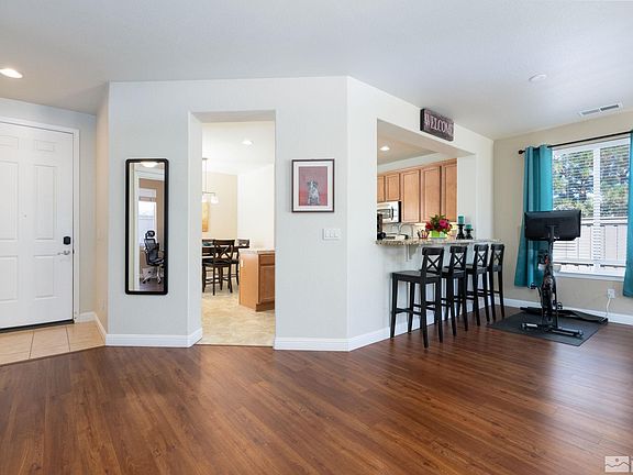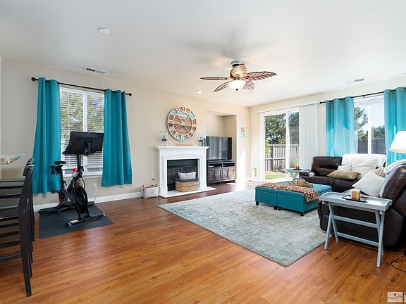 IMMACULATE! OPEN CONCEPT LIVING! FANTASTIC BACKYARD! Situated in highly desirable Curti Ranch in Sth Reno. This modern 3-bed, 2-bath home is bathed in natural light, on a prime corner lot in a cul-de-sac, and no neighbors on one side! The versatile middle bedroom, with double French doors, can serve as a bonus room, and opens up to the living area. Ample kitchen space, includes cozy alcove for dining. Conveniently located near top-rated schools, shopping (Summit Mall), Galena Forest, and I-580., Beautifully landscaped backyard with a charming pond. Enjoy mountain views and access to walking trails right outside your door. This well-maintained home features two-tone interior paint, a cozy fireplace, LVP flooring, and a new water heater. Move-in ready – as seen in the photos.