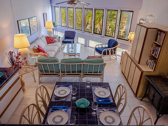Condo With A View! This 2 BR/ 2BA end unit condo has wonderful breezes and big Buck Island views. Enjoy the property's pool, tennis courts, golf course and beach! This is a great gated community to live in full-time or part-time and would make a great vacation rental. Located near several east end restaurants, and the Yacht Club, it's only a 15 minute drive to Christiansted town. This condo has hurricane proof windows and accordion shutters to protect you and the condo from storm damage. The Reef complex has a water treatment plant and sewage treatment facility as well. The main office is staffed weekdays. Additionally there is a pro shop, disc frisbee and designated pickle ball courts.