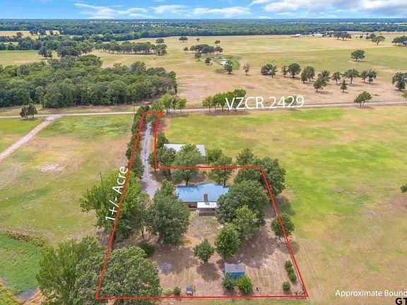 CHARMING, COUNTRYSIDE, BRICK, RANCH style on almost an acre with large hardwood trees and nothing but views! Say goodbye to nosey neighbors and get a piece of East TX seclusion, privacy, and a slower pace of life. No known restrictions! Watch the sunset, the kids play, the dogs wrestle, and the chickens cluck from the large covered back patio. Adorable, large galley kitchen open to dining area and living room with romantic, brick, wood-burning fireplace. Oversized laundry just off kitchen, great for extra storage. Primary suite boasts two walk-in closets and a soaking tub. 3-Car Carport. Workshop. Book your private showing today!