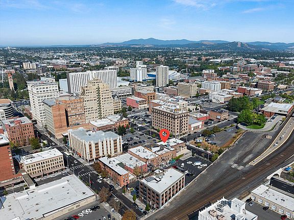 Exceptional investment opportunity in the heart of downtown Spokane! This distinctive 2-level, 1 bed/2 bath condo blends historic charm w/ modern upgrades, featuring exposed brick, hardwood floors & striking custom details throughout. The open main level offers a chef’s kitchen w/ large island, open shelving & beautiful fireplace w/ built-ins. Expansive windows showcase downtown views, including the iconic Paulsen & Hutton buildings. Upstairs, the loft-style suite is a private retreat w/ soaring ceilings, skylight, built-in desk, spa-like bath w/ dual sinks, shower, WIC & in-unit laundry. Located in a secure 7-unit building w/ garage parking, storage locker & HOA-covered W/S/G. Walkable to River Park Square, U-District, hospitals, restaurants & entertainment. Rentals allowed 6+ months (no short-term), pets w/ restrictions. Ideal for investors, professionals, or anyone seeking a one-of-a-kind downtown home. Urban living at its finest in one of downtown’s most distinctive buildings dating back to 1901!