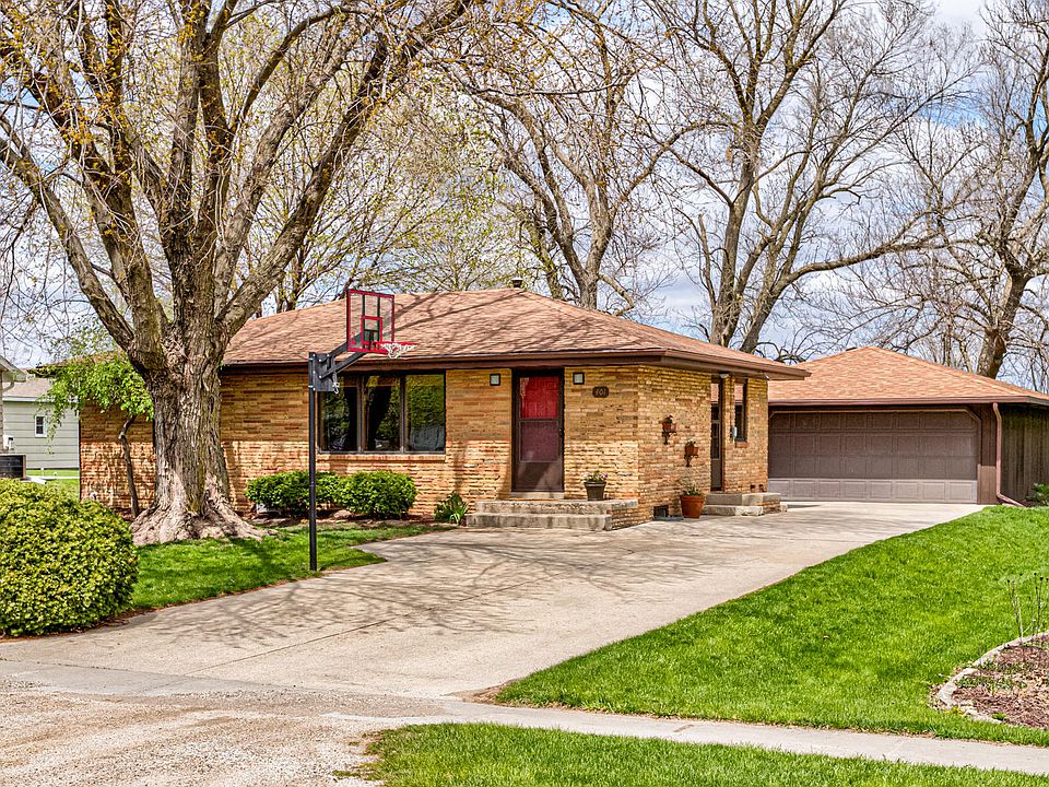Charming brick ranch with an over sized 2-car garage. Enjoy this 3BR, 2 bath home with many updates; move in ready including new HVAC and roof, newer windows, newer appliances, beautiful hardwood floors, spacious lower level family room & additional den/office (could be used as a non-conforming 4th BR. Private backyard. Garage is heated and insulated