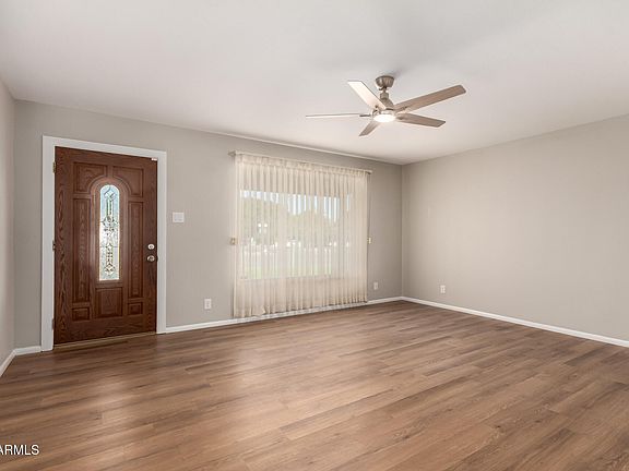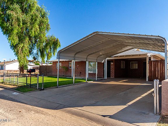 Discover an extraordinary opportunity in South Phoenix: a 3-bedroom, 2-bathroom red brick residence. From the moment you step through the door, you are welcomed into an inviting, open-concept atmosphere that blends with everyday comfort. At the heart of this home, the kitchen boasts elegant granite countertops and integrated appliances. Both bathrooms have been updated with fixtures and stylish vanities. Throughout the house, durable, easy-care wood-like floors not only provide a sleek aesthetic but also help keep the interiors cool during warmer months. Ceiling fans throughout to ensure year-round comfort. This property offers peace of mind. Key structural features include a newer roof, 3 newer storage sheds, a Two-car heavy-duty Carport Canopy with a Galvanized Steel Frame, a large back patio, and a side entry RV Gate.