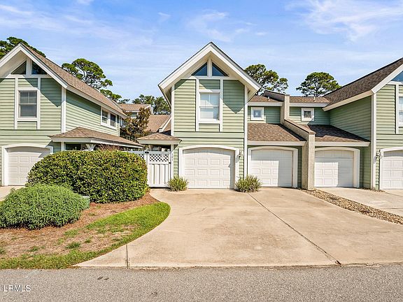 Unwind on your spacious porch with front-row views of Davis Love's 16th fairway and a peaceful lagoon teeming with wildlife. On a higher elevated lot, this home had no water intrusion from Matthew. This never-rented, immaculate 4BR townhome offers over 2500 sq ft of refined coastal living, plus a private 500 sq ft guest suite above the garage with full bath. Inside home, enjoy vaulted ceilings, a gas fireplace, custom built-ins, an oversized kitchen with breakfast area, Bosch dishwasher, LG refrigerator. Hardwood floors in main living area, carpet in all bedrooms. Main floor primary bedroom suite opens to the porch for quiet enjoyment. Both primary bedrooms feature jacuzzi tubs. Laundry room has utility sink and mini fridge.... continued .... Just minutes from Fripp's beach, marina, golf, dining, and island amenities - this is the perfect blend of serenity and sophistification. Note: 2019 Club Car "Tempo" is negotiable - batteries in 2024.