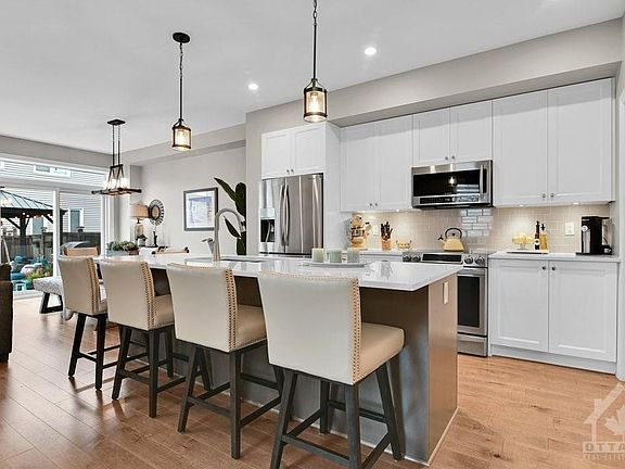 Welcome to 401 Warmstone Drive, an end-unit townhome located in Stittsville North. This meticulously upgraded three-bed, three-bath home features an open concept main floor with a combination living/dining room and a gorgeous kitchen with a large island. You will find matching quartz countertops and Mirage hardwood flooring throughout the home. The living room features a cozy fireplace, perfect for winding down at the end of the day. Upstairs is the primary bedroom with a 4pc ensuite with a separate standing shower and a large built-in soaker tub right by the window. Rounding off the top floor are the two additional bedrooms and a 4pc main bathroom. The lower level family room is suitable for everything from a comfortable night in, to watching the big game with your friends. In the evenings, the fully fenced backyard is the ideal retreat to finish your days, featuring beautifully maintained gardens and a composite deck with a gazebo. Don't miss out on this great opportunity!